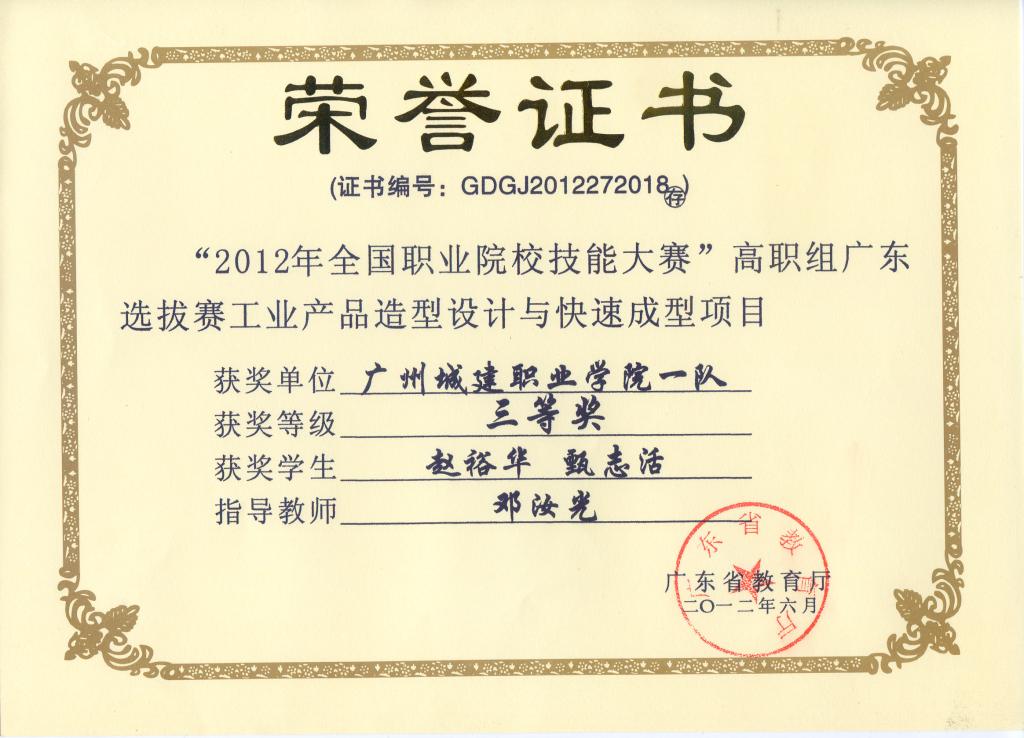 “华宝杯”全国职业院校模具技能大赛三等奖