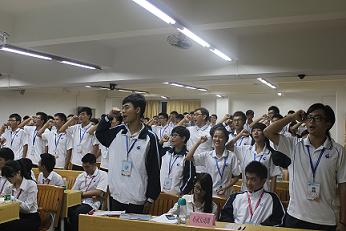 会议开始,嘹亮动人的团歌回荡在整个课室,王鲜副经理循着激扬的歌声上台致词。看着一张张新面孔,王副经理满怀殷切期望,鼓励新干事以身作则,努力创新,凝聚思想,集思广益,增强团队意识,为团学大家庭更好的服务。为此,她还特别提出“十倍效应”,旨在号召全体新干事以一传十,出一己之力,集百人之心,共同带动机信学院蓬勃发展。